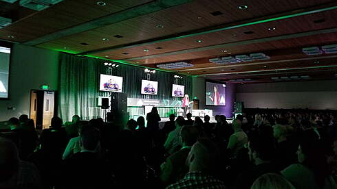 Noelle speaking to packed audiences